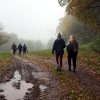 W ubiegłą sobotę (22.10) świętowaliśmy przypadający na 20 października Dzień Krajobrazu. Wędrowna Grupa Krajoznawcza pokonała kolejne kilometry, tym razem po terenie Gminy Grodziczno. Spacer rozpoczęliśmy w Trzcinie przy Pomniku Kajakarzy, skąd udaliśmy się w kierunku Gór Mrockich i wzdłuż strugi Mroczenicy, przez Wąs wróciliśmy do punktu startu. Mleczna mgła przysłaniała krajobrazy, ale to tylko pomogło nam „krajobraz odczuwać w pełni” – zgodnie z tegorocznym hasłem. W czasie spaceru zachęcaliśmy uczestników do wyłączenia zmysłu wzroku, a otworzenia uszu i aktywnego nasłuchiwania krajobrazu.
