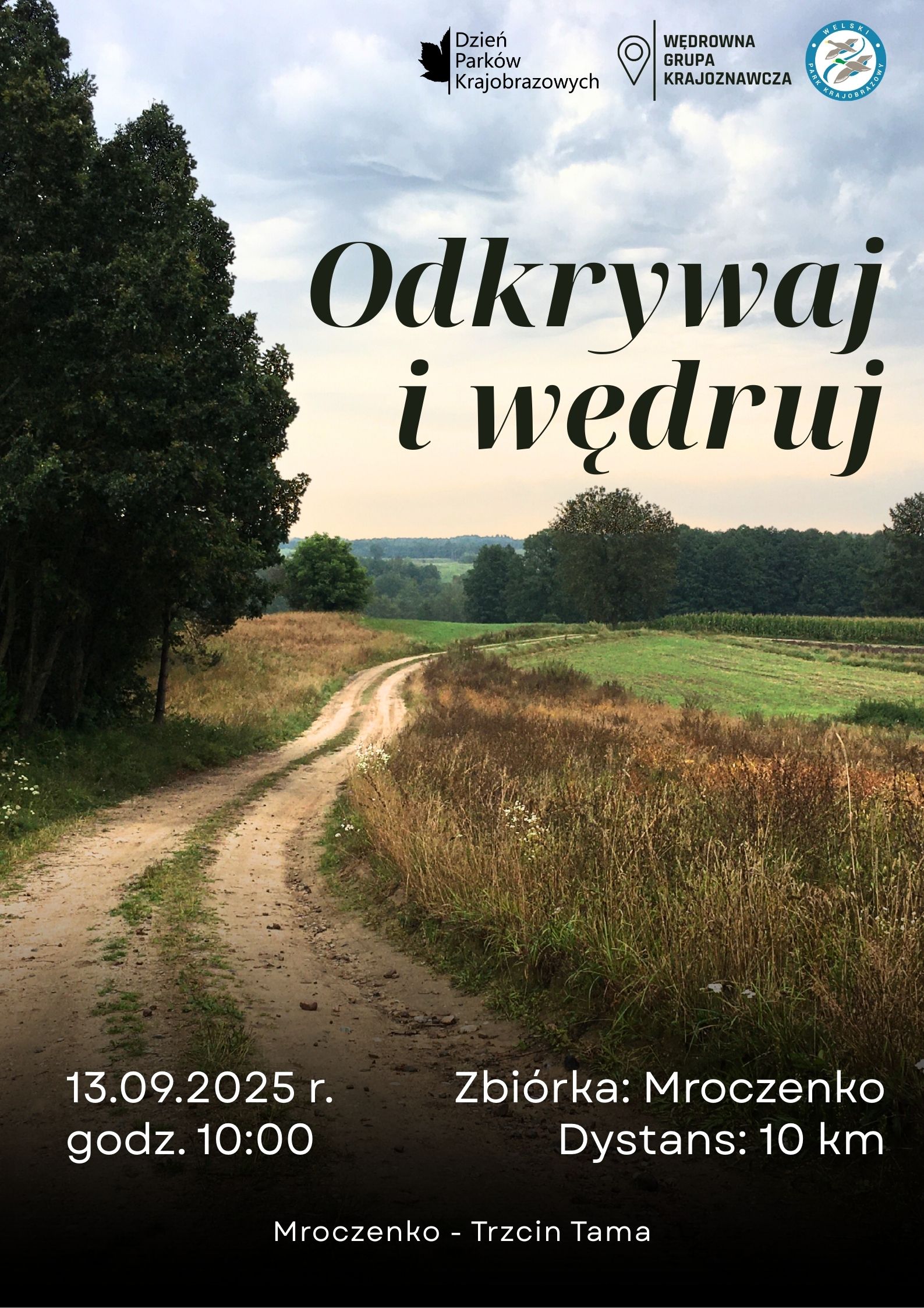 Wypoczęci po wakacjach i pełni nowej energii spotkamy się 13.09.2025 r. o godzinie 10:00 przy świetlicy wiejskiej w Mroczenku (tutaj). Przed nami do pokonania 10 km trasy. Powędrujemy polnymi drogami urokliwej, usianej pagórkami gminy Grodziczno, podziwiając jej rolniczy krajobraz, dolinę Welu oraz Wzgórza Dylewskie w oddali na horyzoncie.